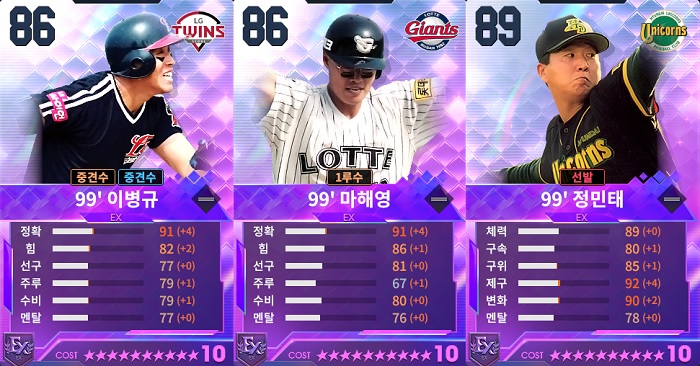 ... 99시즌 선수 카드의 추가로, 프로야구 H3에 처음으로 '쌍방울 레이더스' 선수들이 모습을 드러냈다. 추가된 선수는 총 297명이며 타고투저의 현상이 뚜렷했던 시즌인 만큼, 전체적으로 투수보다는 타자들의 능력치가 전체적으로 높게 산정됐다. 그럼에도 불구하고