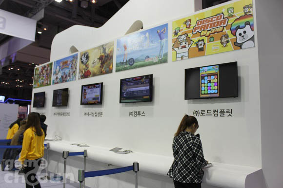 ... 한콘진이 마련한 B2C관은 기능성, 차세대, 문화기술 등 3가지 테마로 구분, 기존의 PC게임존, 모바일게임존, 아케이드존 등 플랫폼별로 게임을 나누던 방식에서 탈피했다. 그도 그럴 것이 올해 공동관 참여사 22개 중 상당수는 씨드나인게임즈(몬스터 길들이기), 데브시스터즈(쿠키