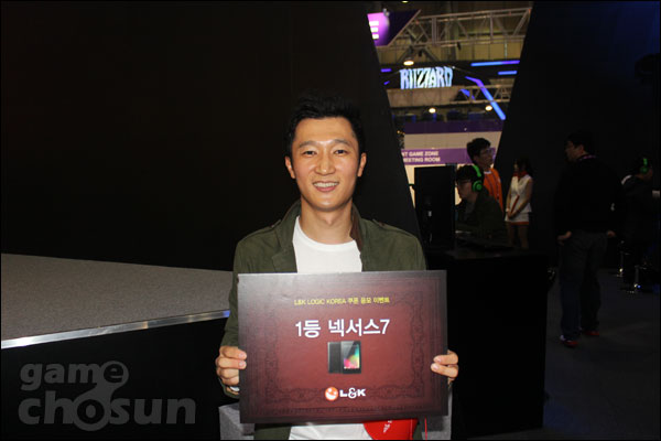 ... ▲ 9일 엘엔케이 이벤트 1등에 당첨된 관람객 [부산=김동수 기자 elkysky@chosun. com] [gamechosun. co