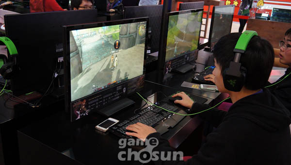 ...1 등 100여 대의 최신 모바일 기기가 구비돼 있으며, 각 부스에 미녀들이 배치돼 관람객들에게 신작 모바일게임의 사용법을 안내하고 있다. [부산=최지웅 기자 csage82@chosun. com] [gamechosun