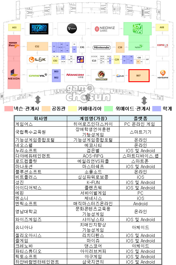 ... 출품작 라인업은 최근 인기인 소셜게임 '아이러브커피'와 스마트폰 AOS '플랜츠워', 실시간 전략게임 '제네시스' 등 흥미로운 게임들로 이뤄졌다. 온 가족이 즐길 수 있는 캐주얼게임부터 액션, 전략, 스포츠 등 다양한 장르의 게임이 전시된다. 교육 및 의료 목적의 기능성게