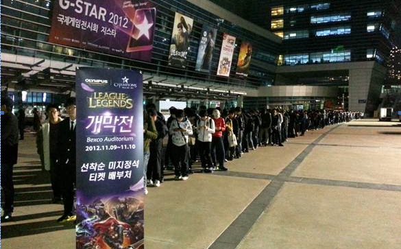 ... 해당 티켓은 개막전을 볼 수 있는 오디토리움 2층 좌석으로 1인 1매에 해당한다. 팬들은 긴 행렬 속에서도 부산에서 처음 열리는 LOL 리그에 큰 관심을 보였고 직접 프로게임들의 경기를 관전할 수 있다는 생각에 들뜬 표정이었다. 한편 옥션을 통해 판매된 유료 티켓 3000