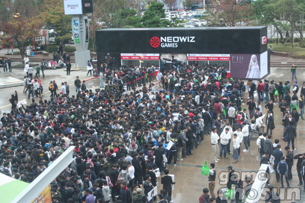 ... ▲ 입장권을 구매하기 위해 줄을 서 기다리는 관람객들 ▲ 건물 내부로 집입하기 위해 기다리는 관람객들 ▲ 지스타 행사장을 코앞에 두고 기다리는 관람객들 ▲ 수학능력 시험이라 학생들이 많이 방문했다. ▲ 입장만들 기다리는 관람객들 [지스타11 특별 취재팀 gamedes