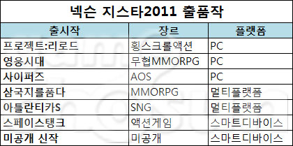 ... ▲ 넥슨의 주요 출품작인 '프로젝트:리로드'와 '아틀란티카S' 로고 우선 횡스크롤 액션슈팅게임 ‘프로젝트 : 리로드’와 자회사 엔도어즈에서 퍼블리싱하는 무협MMORPG ‘영웅시대’를 최초 공개하며, 지난 6월 서비스 후 많은 인기를 얻고 있는 액션게임 ‘사이퍼즈’, 엔도어즈