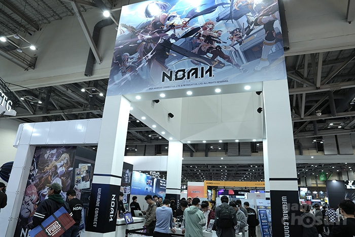 ... '노아' 부스는 8m 높이의 탑처럼 솟아오른 구조물에게임 PV 영상을 상영하는 모니터와 캐릭터 이미지, 키 비주얼등을 설치해 시선을 끌었으며, 화이트톤으로 구성된 내부 부스를 빙 둘러 긴 대기열이 마련될 정도로 성황이었다. 게임을 직접 플
