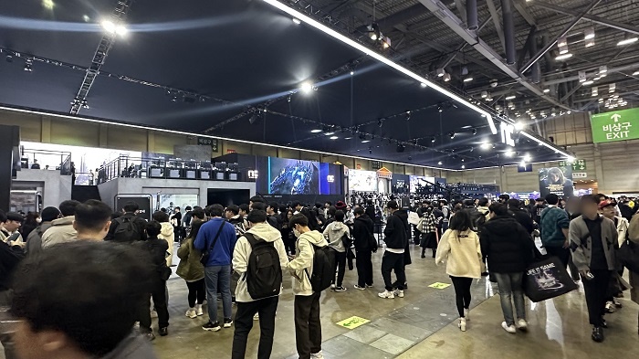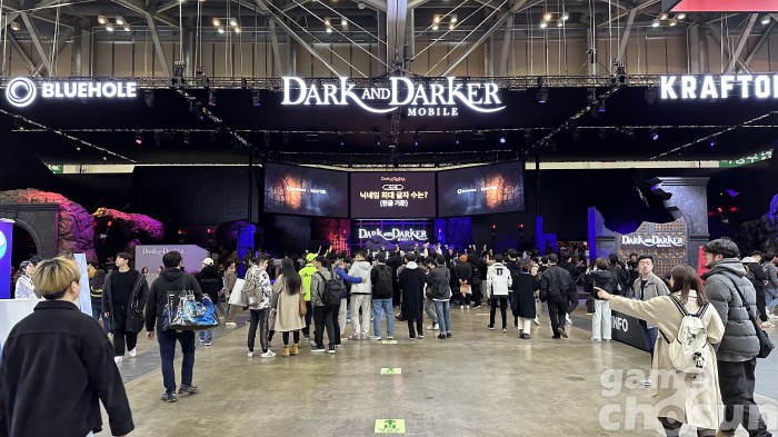 ... 특히 '다크앤다커'와 '인조이'는 관람객이 직접 게임을 체험해볼 수 있도록 시연존을 마련했으며, 크래프톤의 신작을 만나보고자 장사진을 이루는 모습을 확인할 수 있었다. 다크앤다커의 시연존은 게임의 다크한 콘셉트에 맞춰 매우 어두운 분위기로