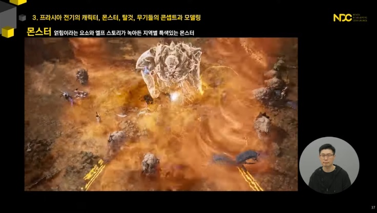 ... 해당 강연에서는 넥슨의 차기작 '프라시아 전기'를 중심으로 캐릭터와 몬스터, 탈것, 무기가 어떻게 탄생되는지, MMORPG 콘텐츠 양산이 어떻게 이뤄지는지, 그리고 캐릭터 제작 팁으로는 어떤 것이 있는지에 대해 자세히 소개했다. 프라시아 전기 개