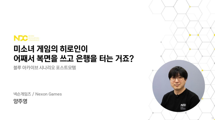 ... 그는 이직과 전배를 밥 먹듯이 하는 한 치 앞도 보이지 않는 게임 회사에서 어떻게 정년퇴직까지 할 수 있었는지 충분히 의문점을 가질 수 있다. 경력 관리를 어떻게 해야 하는지에 대한 주제는 본인에게도 참 어려운 주제라며 강연을 시작했다. 이후 강연은 정해진 몇 가