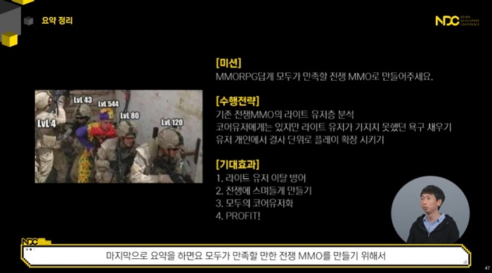 ... '넥슨 개발자 콘퍼런스 2022(이하 NDC 2022)'에서는 넥슨 프라시아 전기 콘텐츠 기획 유닛의 조현식 개발자가 프라시아 전기에서 라이트 유저를 케어할 전략에 대해 자세히 설명했다. 조현식 개발자는 "프라시아 전기는 정말 잘 만든 전쟁 M