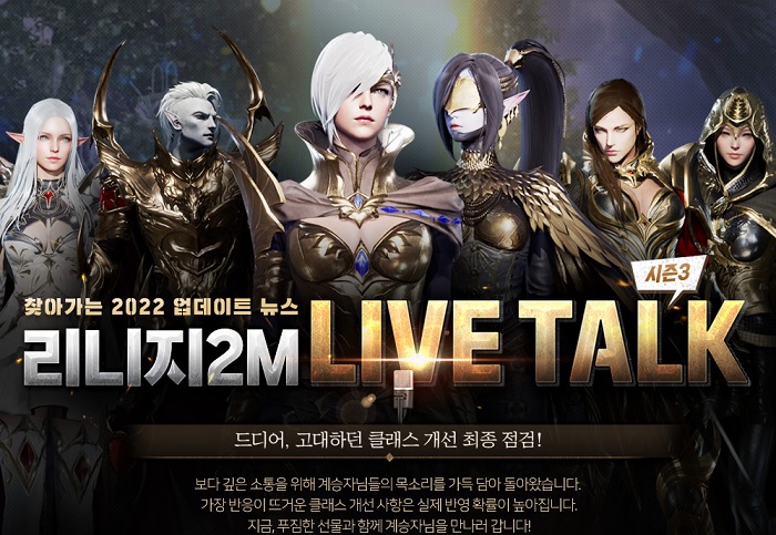 ... 실제로 온라인 생방송 시청자가 1만 명에 육박하면서 그 열기를 확인할 수 있었다. 이날 라이브 토크 시즌3에는 리니지2M 이학주 사업실장과 전현수 PD가 자리해 이용자들과 적극 소통했다. 가장 먼저 지난 업데이트 히스토리를 살펴보는 코너가 진행됐다