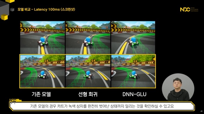 ... 발표자로는 니트로 스튜디오에서 카트라이더: 드리프트를 개발하고 있는 RND 유닛 소속 김진호 개발자가 나섰다. 김진호 개발자는 '<카트라이더: 드리프트> 머신러닝을 활용한 위치 예측 개선'이라는 주제로 발표했으며, 해당 발표를 통해 위치 예측의 필