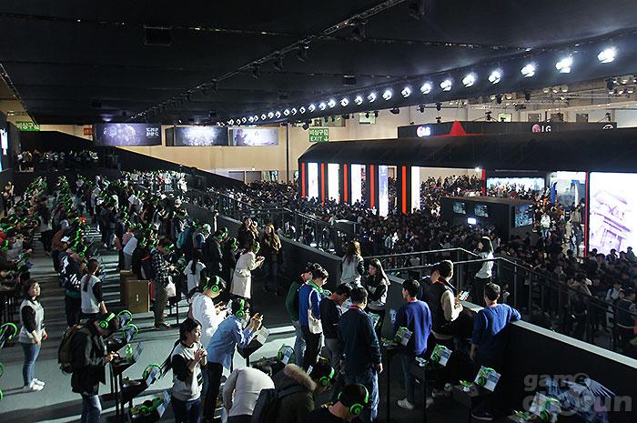 ... 이용자들은 입장을 기다리며 외부에 차려진 다양한 이벤트 부스를 구경하거나 참여하면서도 질서정연히 대기하는 모범적인 모습을 보였다. 행사장 내부도 주말을 맞아 행사장을 찾은 관람객들로 만원이다 = 게임조선 촬영 '지스타2018' 행사장 내부에서는 기대작들과 접하기 힘든