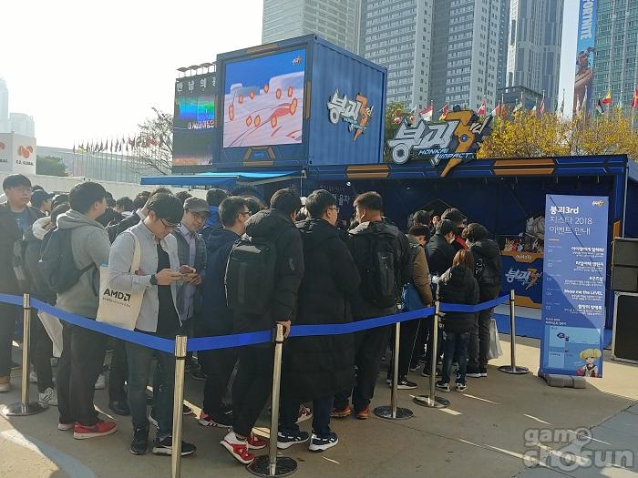 ... 뿐만 아니라 모바일 입장권 입구에도 관람객들이 모여 벡스코 앞 광장을 채웠다. 3일차의 지스타에도 각 게임사들은 각종 현장 이벤트를 개최해 이용자들에게 각종 볼거리를 제공할 예정이다. 먼저 카카오게임즈는 ‘카카오배틀그라운드’와 ‘프렌즈레이싱’ 시연과 함께 현장 이벤트를 진행해 관