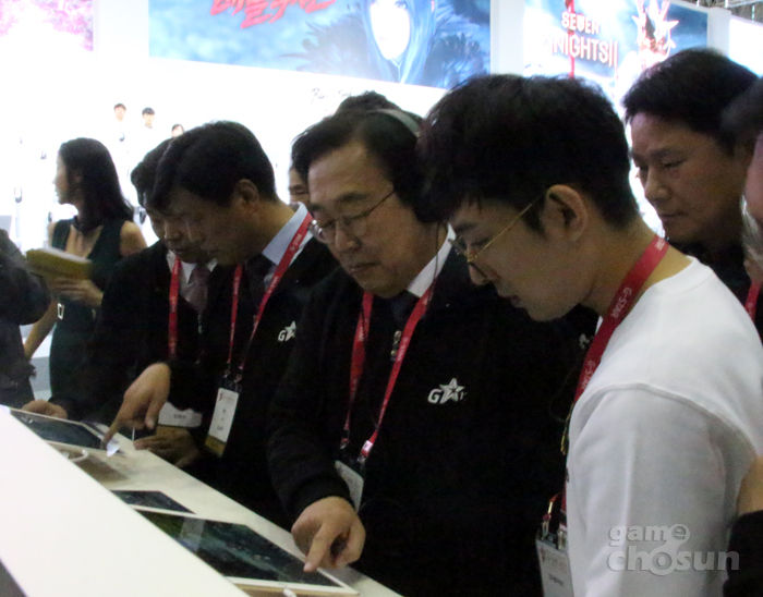 ... 게임업계에서는 박지원 넥슨코리아 대표이사, 구오 하이빈 액토즈소프트 대표이사, 김효섭 블루홀 대표이사, 권영식 넷마블게임즈 대표이사가 참여했으며 김영철 한국콘텐츠진흥원 부원장, 김규철 게임콘텐츠등급분류위원회 위원장, 칼 크란츠 실리콘밸리VR협회장 등 유관기관 기관장들도 함께