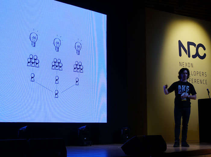 ... NDC는 지난 23년 간 대한민국 게임산업을 이끌어온 넥슨 구성원들이 게임 개발 관련 경험과 지식을 공유하고자 국내 게임업계 최초로 시작한 게임 개발자 컨퍼런스다. 이날 컨퍼런스에서는 게임 기획과 프로그래밍, AI 기술 등 다양한 분야에 걸친 강연이 진행됐으며 백재순 씨는