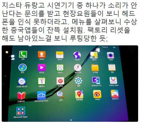 ... 루팅은 안드로이드폰 운영체제를 탑재한 모바일 기기에서 관리자 권한을 획득하는 행위로 일종의 해킹이다. 실제로 문제의 시연 기기에는 정체를 알 수 없는 앱들이 잔뜩 갈려 있었고 소리가 나지 않는 등 오작동이 발생했다. '야생의 땅: 듀랑고’의 기술을 빼내기 위한 악의적인 목적