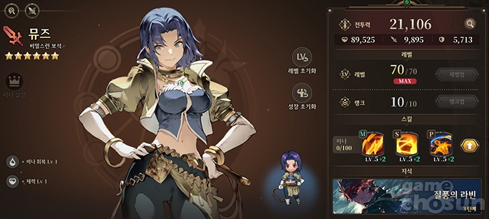 ... 스킬 타이밍이 중요한 가가브에서 마나 회복은 있으면 있을수록 좋은 시너지로 평가받죠. 체력 역시 딜탱 역할에 뒷받침되는 효과입니다. 뮤즈는 디렉터 공인으로 근접 서브 딜러 포지션으로 구분된 캐릭터로, 딜량 자체는 메인 딜러급인 미첼이나 초월자 마일, 구원자 어빈 등에 비하