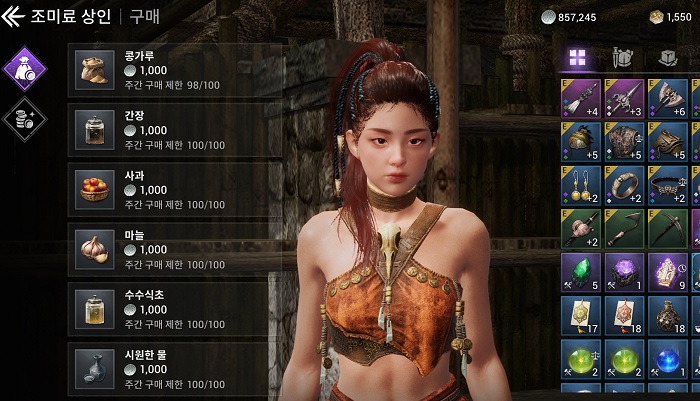 ... 어스름 약술과 아라문의 비약은 이벤트 보상 및 마일리지 상점 구매 등으로 획득할 수 있기에 이용자가 상시적으로 활용하기에는 무리가 있다. 마지막으로 음식은 특정 재료를 요리 및 조미료 상인으로부터 입수하고 주요 마을 및 거점의 모닥불에서 만들 수 있는 버프 아이템이다.
