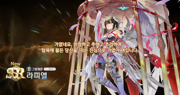 ... 세피엘은 강력한 군중제어 효과로 세리아드를 PVP 1티어 캐릭터로 만들었고, 여전히 자주 기용되는 그랑웨폰이다. 이번에 추가된 라피엘은 개발진이 PVP에서 루인이 더 강력한 모습을 보일 수 있도록 준비했다고 밝혔던 만큼 많은 유저, 특히 땅속성 캐릭터를 꾸준히 기용해온 유저들에