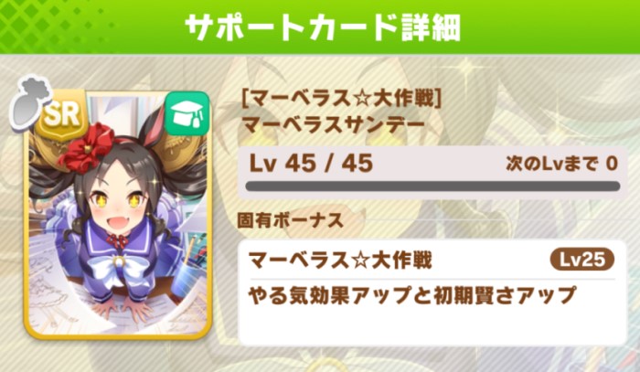 ... 따라서 자신의 육성 목적에 맞는 서포트 카드를 배치하는 것이 육성의 기본이라고 할 수 있다. 앞서 언급한 대로 서포트 카드는 캐릭터의 능력치부터 스킬까지 다양한 육성 보너스를 가지고 있다. 이러한 육성 보너스는 육성 시나리오와 우마무스메가 가진 각질(레이스 전략), 레이