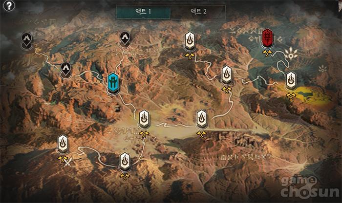 ... 액트 2에서는 총 일곱 종류의 보스가 존재하며, 일부 보스는 서브 퀘스트를 통해 만나는 보스 몬스터로 메인 퀘스트만을 진행하면 일부는 놓칠 수 있다. 주요 속성은 최종 보스인 글라누스를 제외하면 물리나 화염으로 통일돼 있고, 글라누스만 물리와 번개 피해가 조합돼 있다.