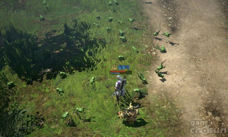 ... 개구리는 특정 지역에 비가 올때만 등장하는 몬스터로, 매우 낮은 체력과 방어력에 비해 높은 수준의 아데나를 제공하는 것이 특징이다. 특정 날씨와 지역에서만 등장하는 이벤트이지만, 해당 이벤트를 빠르게 캐치하고 개구리를 다량으로 처치한다면 짧은 시간 내에 꽤 많은 아