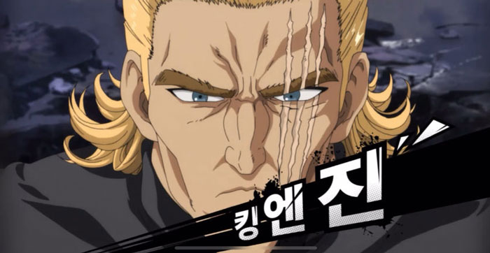 ... 원펀맨: 최강의 남자는 이러한 킹의 특징을 매우 잘 반영한 모습이다. 게임 내에서 킹은 SSR 등급의 초능력 계열 히어로로 등장하며,단일 적을 눈빛으로 제압하는 일반 공격 '제왕의 응시'와 전장의 중심에 서서 마치 엔진의 구동음과 같은 심장 박동 소리로 적의