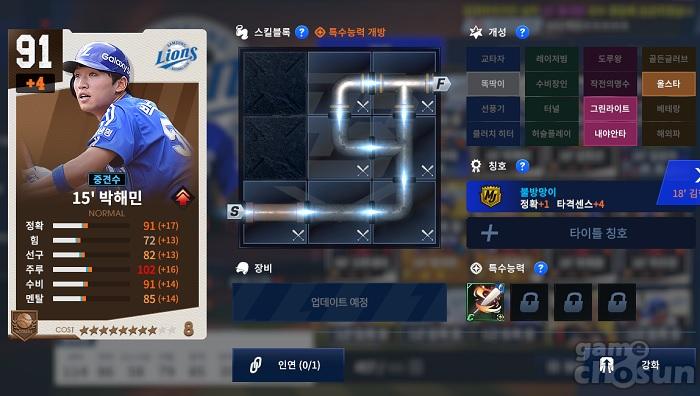 ... 다만 실제 프로야구 경기의 스텟을 기반으로 선수들의 능력치가 정해지는 만큼 구단별로 선호하는활동 연도가 있다. 그래서각종 커뮤니티에는 선택한 구단의 연도 추천과 같은 질문들이 가득하다. 동일한 구단, 연도의 선수들로 라인업 구성 시 팀컬러 효과를 얻을 수 있으며 일치하