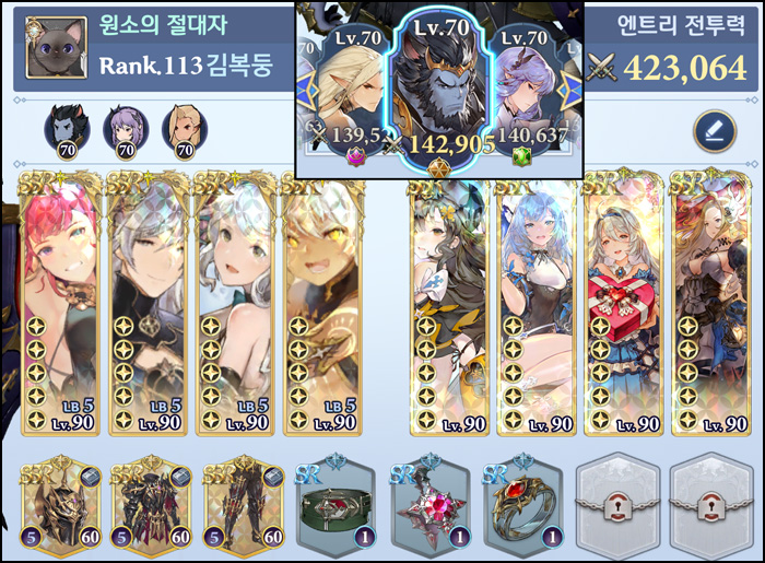... 결투장 엔트리선택 캐릭터는 아무래도 다양성보다 검증된 조합을 쓰는 경향이 점점 강해지고 있는 중. 탱커는 윈, 딜러는 나마리에,준, 카르트 셋으로 압축되는 경향이 강해지고 있다. 특히 이번주는 각 서버 TOP 5의 랭커 중 힐러 세리아드가 단 한 명도 선택하지 않아 0%