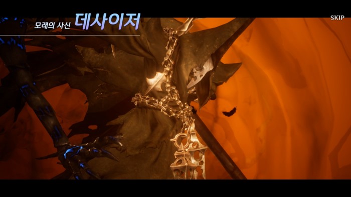 ... 주요 기술로는 상기 언급한 광역 기술과 행동 방해 기술 외에도 캐릭터에게 중첩마다 캐릭터의 공격력을 낮추는 '사신의 증표', HP 회복량을 감소시키는 '사신의 저주'가 있다. 다른 토벌전 보스인 '우가루'나 '카르마'