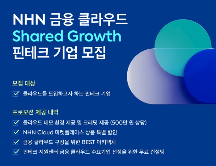 ... 이번 사업에서 NHN클라우드는 수요기업인 핀테크 분야 중소기업의 서비스 유형, 규모 등 핵심 요구사항을 고려해 클라우드 서비스를 제공한다. 수요기업은 이번 사업을 활용해 NHN클라우드의 금융 특화 클라우드 서비스를 더욱 합리적인 비용으로 이용할 수 있다. NHN클라