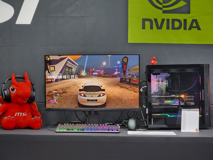 ... 방문하는 고객들은 누구나 참여가 가능하며, 체험한 고객을 대상으로 이벤트와 판매도 이루어지고 있다. - MSI 지포스 RTX 40 시리즈 체험존 전시 그래픽카드 MSI 지포스 RTX 4090 슈프림 X 트라이프로져 3S MSI 지포스 RTX 4080 게이밍 X 트리