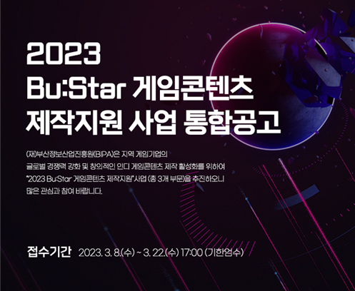 ... 상용화 분야는 가능성 있는 지역 게임콘텐츠를 발굴하여 지원 기간 내 마켓 서비스 출시 과정을 지원한다. 특히, 올해는 프로토타입 분야 지원 규모를 확대하여 창의적이고 도전적인 게임콘텐츠 발굴에 더욱 힘쓸 예정이다. 2015년부터 진행되고 있는 부스타(Bu:St