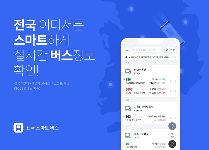 ... 또한 교통 서비스 앱으로는 유일하게 버스 배차 간격이 커 불편을 겪는 60여 개 산간 지역의 배차 시간표 기능을 추가로 제공하고 있다. 지난해 7월 월간순사용자(MAU) 100만 명을 돌파한 ‘전국 스마트 버스’는 거리두기 해제 이후 대중 교통 수요가