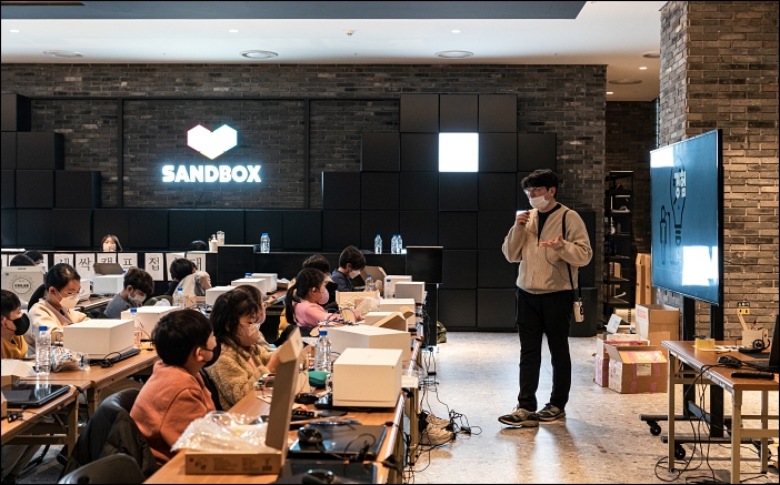 ... 교육 장소로 제공된 샌드박스 스튜디오를 찾은 청소년들은 SW·AI 교육 프로그램 참여 뿐만 아니라, 크리에이터들이 직접 촬영하고 컨텐츠를 만드는 스튜디오 시설을 탐방하고 기념사진 촬영을 하는데 여념이 없었다. 한편, 서울 지역에서 마지막으로 진행되는 캠프는 2
