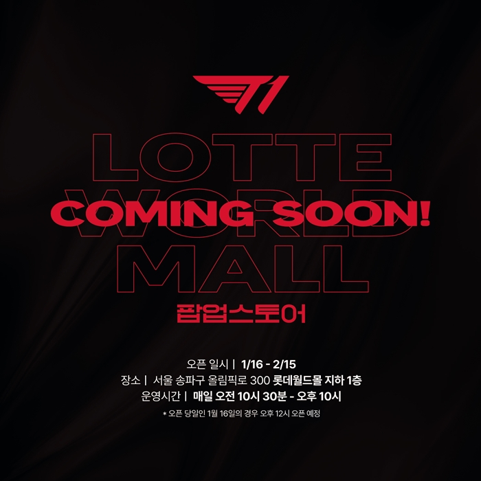 ... 이와 함께 다양한 이벤트와 현장에서만 찍을 수 있는 LCK 트로피가 전시되어 있는 포토존도 마련됐다. T1 COO 안웅기는, "T1 SHOP 팝업스토어에서만 판매하는 굿즈를 많이 준비했다. 방문하는 모든 고객에게 특별한 오프라인만의 경험을 제공하기 위해 각 주차