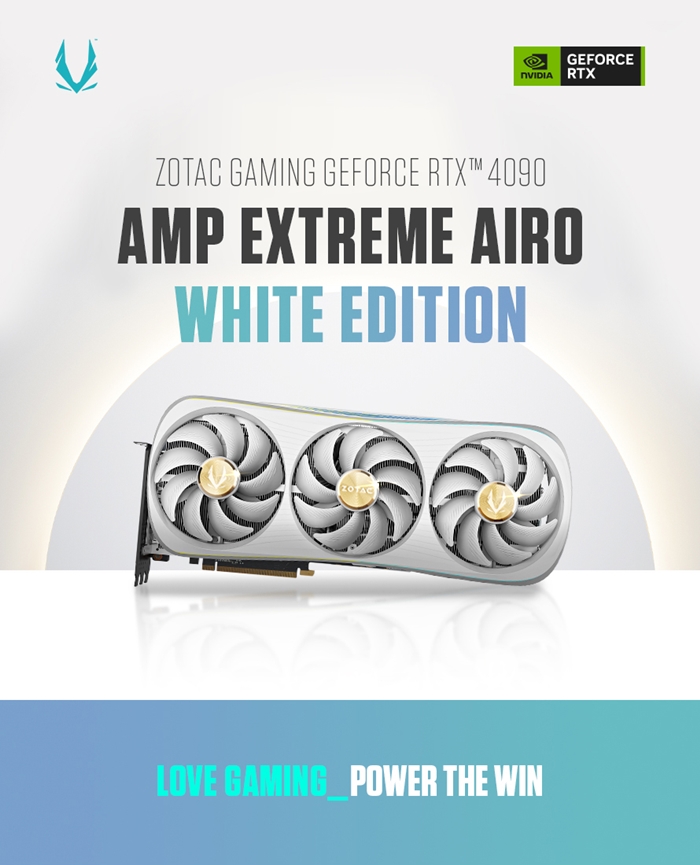 ... 첫 출시부터 유려한 디자인과 강력한 성능, 만족스러운 온도로 각광을 받은 ZOTAC GAMING GeForce RTX 4090 AMP Extreme AIRO는 이제 아이코닉 화이트 컬러로 변신한 ‘ZOTAC GAMING GeForce RTX 4090 AMP Ext