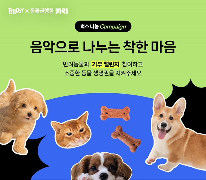 ... 음악과 기부를 연계한 전용 상품을 선보여, NHN벅스의 수익금 일부를 주기적으로 기부하는 방식의 캠페인이다. ▲올해 2월 사회복지단체 사랑의달팽이와 청각장애인 지원 상품을 출시한 것을 시작으로, ▲5월에 동물권행동 카라와 협력해 동물 보호 활동을 돕는 상품을 선보였으며,