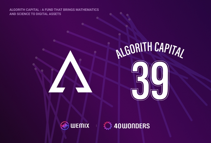 ... 알고리스 캐피탈은 고유번호 39번(WONDER 39)을 선택했다. 알고리스 캐피탈은 데이터 분석을 통하여 전통 금융시장부터 가상화폐 같은 대체자산까지 다양한 자산을 전문적으로 투자하는 세계 굴지의 운용사다. 알고리스 캐피탈의 이번 NCP 합류로 위믹스 생태계 구축과