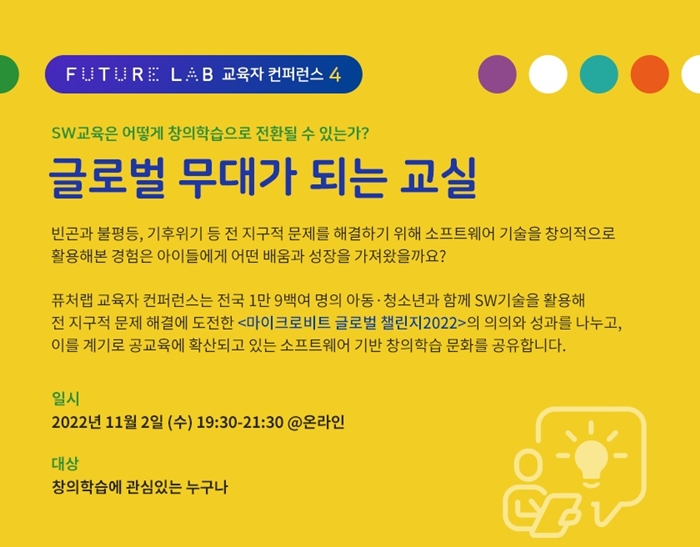 ... 두 학생은 MGC를 통해 길고양이 개체 수를 조절하는 일명 ‘냥집’ 프로젝트를 영국 본선 do your :bit 2022에 제출, ‘아태지역 아이디어 부문 러너상’을 수상한 바 있다. 이번 컨퍼런스에서는 퓨처랩이 조성해 온 창의학