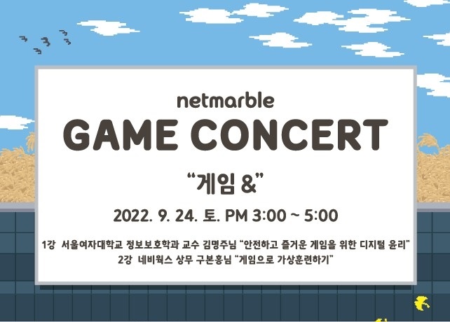 ... 올해는 ‘게임 &’를 메인 테마로 게임 및 타 산업과의 콜라보레이션을 진행해 연계 가능성을 모색하고, 메타버스 플랫폼을 통해 시간과 공간에 제약 없는 쌍방향 소통형 강연으로 진행하고 있다. 올해 세 번째로 열리는 이번 게임콘서트에는 서울여