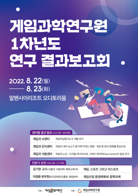...게임과학연구원윤태진원장의환영사와한국콘텐츠진흥원조현래원장의축사로막을올린이번결과보고회는게임과학연구원산하3개연구센터(게임과뇌센터,게임과인지센터,게임과사람센터)의연구담당자인안효연박사(게임과뇌센터),문익현연구원(게임과인지센터),이경혁/편미란연구원(게임과사람센터)의연간연구결과보고와김기한교수(