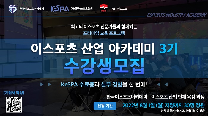 ... 한국e스포츠협회 김철학 사무총장, 농심 이스포츠 오지환 대표, LCK 이호민 팀장, 샌드박스 게이밍 정회윤 단장을 비롯한 업계를 대표하는 현직자들이 강의를 직접 진행해 수강생들은 산업 전반에 대한 인사이트를 공유 받을 수 있다. 이번 기수에는 새롭게 미디어 파트의 인벤 신
