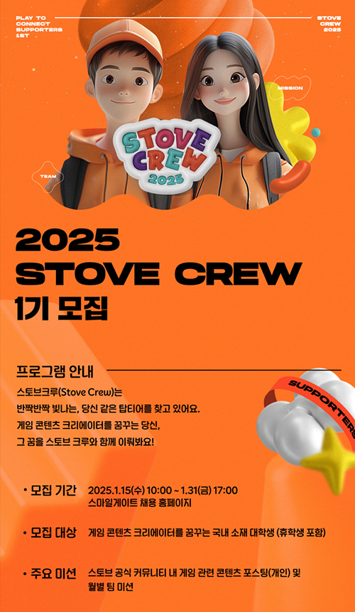 ... 지원자는 지원 동기, 활동 계획 등을 스토브 홈페이지를 통해 제출하면 된다. 특히 게임 콘텐츠 제작 역량과 본인이 운영하는 SNS 채널이 있을 경우 관련 내용을 중점적으로 작성하면 좋다. 최종 선발 된 스토브 크루는 3월 1일부터 5월 31일까지 3개월 간 활동할