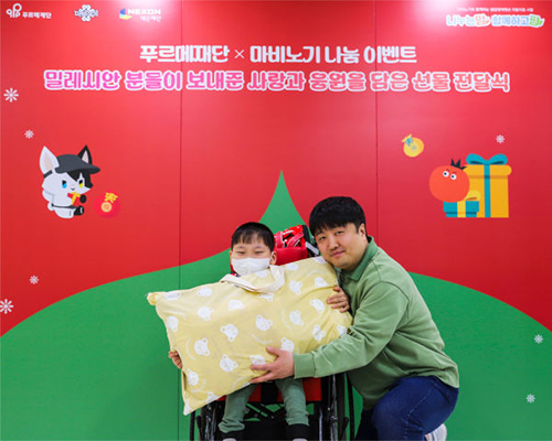 ... 이날 전달된 ‘낮잠 이불 세트’는 재활 치료를 받는 장애 어린이들의 부모들이 가장 필요한 선물로 직접 선정한 품목이다. 이불 세트는 병원 내 어린이들이 휴식을 취하거나 다음 치료 전까지 대기할 때 안정감과 편안함을 갖게 해 활용도가 높다. 대표로 현