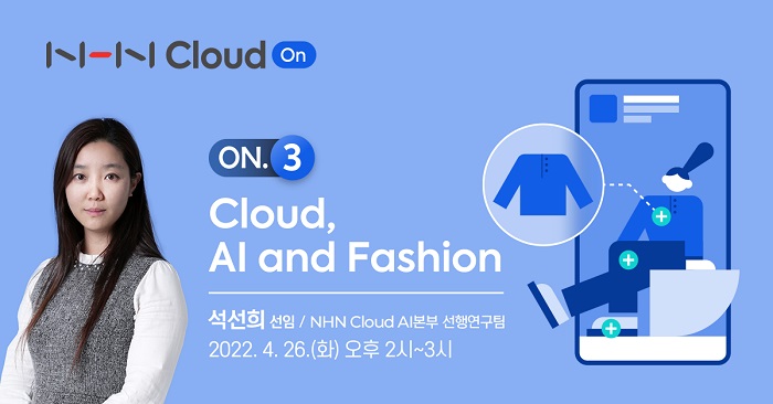... ‘Cloud, AI and Fashion’이라는 주제로 진행되는 이번 웨비나는 NHN클라우드 AI본부 선행연구팀 석선희 선임이 연사로 나선다. 웨비나는 ▲패션 산업에서의 AI 기술 ▲NHN 클라우드의 AI Fashion ▲앞으로의 AI Fashion를