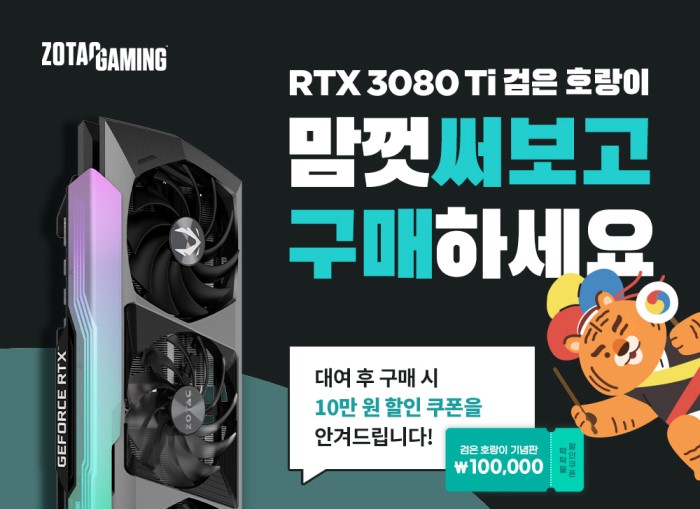 ... 본 행사는 조텍코리아 공식 IT 쇼핑몰 ‘탁탁몰’에서 4월 4일부터 4월 동안 한정 수량, 선착순으로 진행되며, 대여 기간은 최대 5일이다. 대여 신청은 주의사항을 확인한 후 탁탁몰 내에 있는 ‘대여 신청 게시판’에 필수 자료를