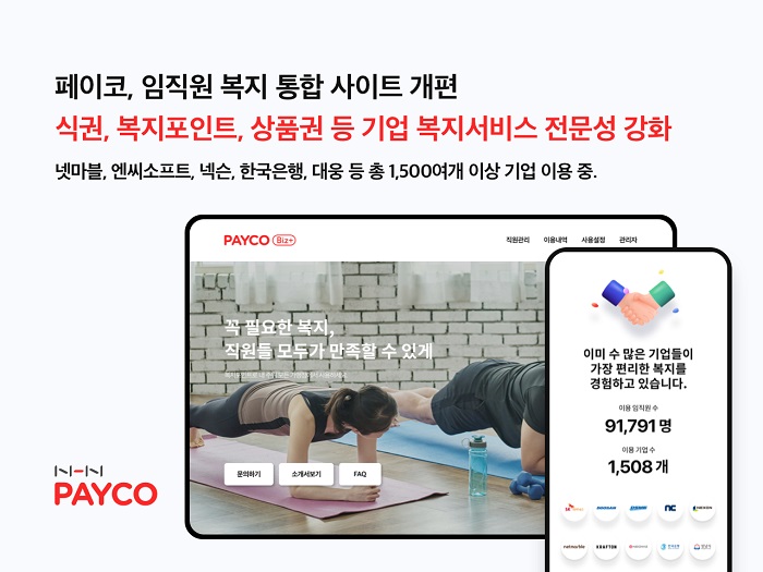 ... NHN페이코는 높아지는 기업 복지 솔루션 수요에 맞춰 서비스 경쟁력 향상과 이용자 편의성 증대를 위해 최근 서비스 웹사이트를 통합 개편했다. 새로운 웹사이트에서는 고객사에서 요구하는 식권, 복지 포인트, 상품권 등의 복지 기능을 하나의 페이지로 통합해 제공하고, 솔루션 도