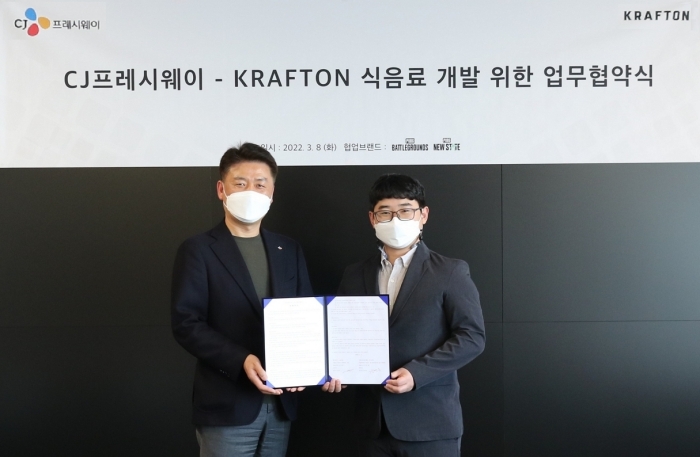 ... 크래프톤은 배틀그라운드 IP를 제공하며, CJ프레시웨이는 상품 개발 및 판매를 담당한다. 크래프톤은 협업을 통해 IP를 활용한 폭넓은 식음료 상품을 선보이며 게임 이용자와의 접점을 확대한다. 특히 트렌드를 이끄는 MZ세대에게 색다른 재미를 선사하고 관심을 사로잡을 것으로 예상