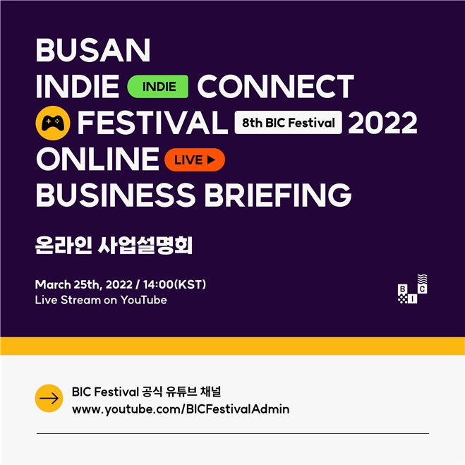 ... 특히 접수시스템 가이드는 특별 게스트인 BIC의 버츄얼 인플루언서 ‘존’이 안내할 예정으로 친숙하고 귀여운 이미지와 톡톡 튀는 입담을 앞세워 향후 단독유튜브 채널을 통해 역대 BIC 전시작을 소개, 게임 유저와의 네트워킹을 통한 ‘BIC 페스